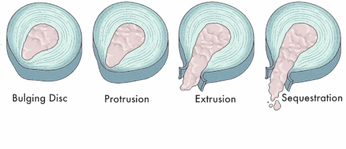 Yes: Bulging, protrusion, extrusion and sequestration. Ruptured or torn outer fibres of the annulus fibrosis will aggravate the disc symptoms.